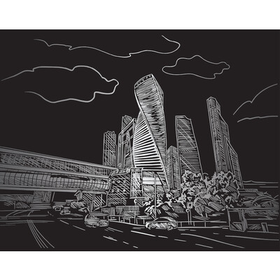 "Hobbius" SGHK Набор для творчества "Гравюра" 20 x 25.5 см №77 "Москва - Сити" (серебро)