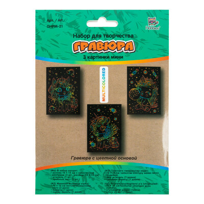 "Hobbius" GHPM-21 Набор для творчества "Гравюра мини" 10 x 15 см 3 шт "Единорожки" (мульти)