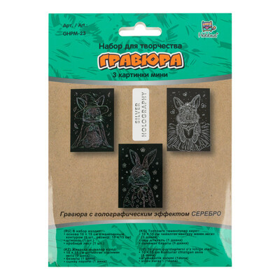 "Hobbius" GHPM-23 Набор для творчества "Гравюра мини" 10 x 15 см 3 шт "Зайчата" (серебро)