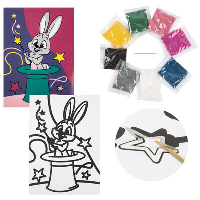 "Hobbius" SPT-01 Набор для раскрашивания цв.песком 16.5 x 23 см №36 Заяц - фокусник
