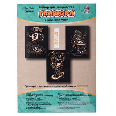 "Hobbius" GHPM-19 Набор для творчества "Гравюра мини" 10 x 15 см 3 шт "Роботы" (золото)